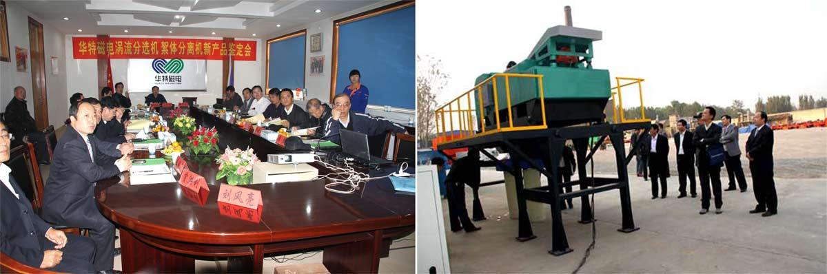 2010年10月30日,由公司承擔(dān)完成的山東省技術(shù)創(chuàng)新計(jì)劃項(xiàng)目“強(qiáng)磁場(chǎng)渦流分選機(jī)”和“稀土永磁絮體分離機(jī)”兩項(xiàng)新產(chǎn)品省級(jí)鑒定會(huì)在臨朐召開。會(huì)議由山東省科技廳、山東省經(jīng)信委組織,濰坊市科技局和濰坊市經(jīng)信委聯(lián)合主持。來(lái)自中國(guó)科學(xué)院電工研究所、中色科技股份有限公司、山東大學(xué)、山東科技大學(xué)、煙臺(tái)大學(xué)、山東省環(huán)境保護(hù)科學(xué)研究設(shè)計(jì)院、山東省機(jī)械設(shè)計(jì)研究院等單位的專家教授應(yīng)邀到會(huì)。臨朐縣政府副縣長(zhǎng)趙同祥致歡迎辭。