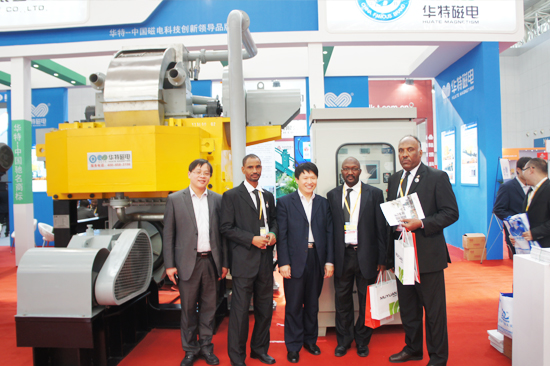 進(jìn)入N1展館,一眼便能望到藍(lán)白相間的華特磁電展區(qū),此次,華特攜1.5m立環(huán)高梯度磁選機(磁場達(dá)18000Gs)和1.8m大筒徑高效濕式預(yù)選機參展,憑借油冷卻技術(shù)及產(chǎn)品低能耗、低溫升、高場強、高壽命等顯著優(yōu)勢,先后吸引了300多家客戶,其中近期有合作項目的五十余個。