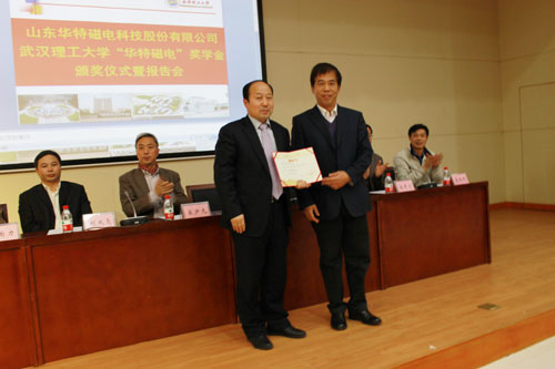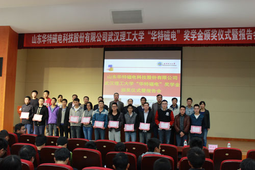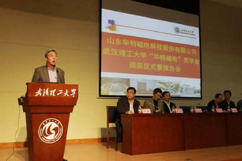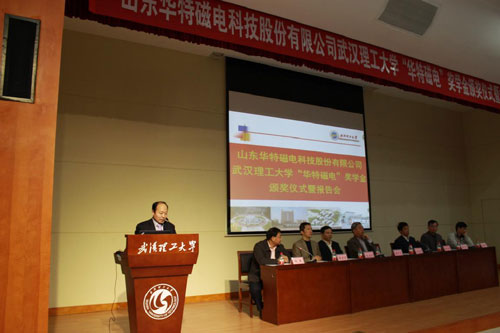 11月20日華特磁電董事長(zhǎng)、總裁王兆連先生,公司常務(wù)副總裁劉風(fēng)亮受邀赴武漢理工大學(xué)參加華特磁電獎(jiǎng)學(xué)金頒獎(jiǎng)儀式并分別作重要報(bào)告。校方高度重視,兩位院士及院校主要領(lǐng)導(dǎo)10余人熱情接待,并組織近四百名師生參加此次活動(dòng)。