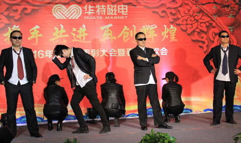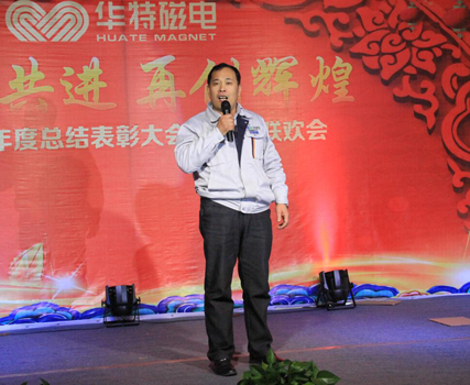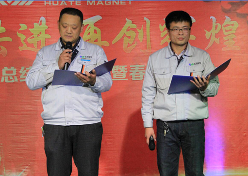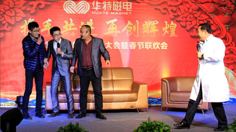 2017年元月20日下午,山東華特公司2017年春節聯歡會在公司二樓餐廳隆重舉行。公司董事長兼總裁王兆連,常務副總裁劉風亮,公司董事、副總裁劉梅,副總裁王建波,公司董事、工會主席王學軍,總裁助理魏黎明、劉西軍,財務總監、董秘孟昭剛,公司監事會主席、總工程師賈洪利及濰坊新力超導磁電科技有限公司常務副總李培勇等全體員工齊聚一堂,繼往開來,其樂融融。