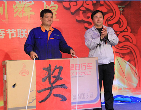 由公司常務副總劉風亮抽取本次活動的大獎,山地自行車一輛