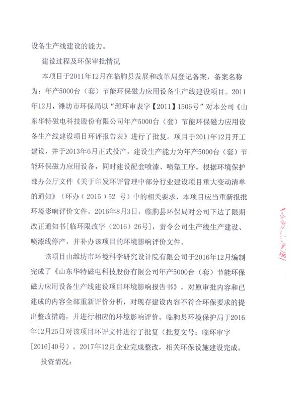 《山東華特磁電科技股份有限公司年產5000臺(套)節能環保磁力應用設備