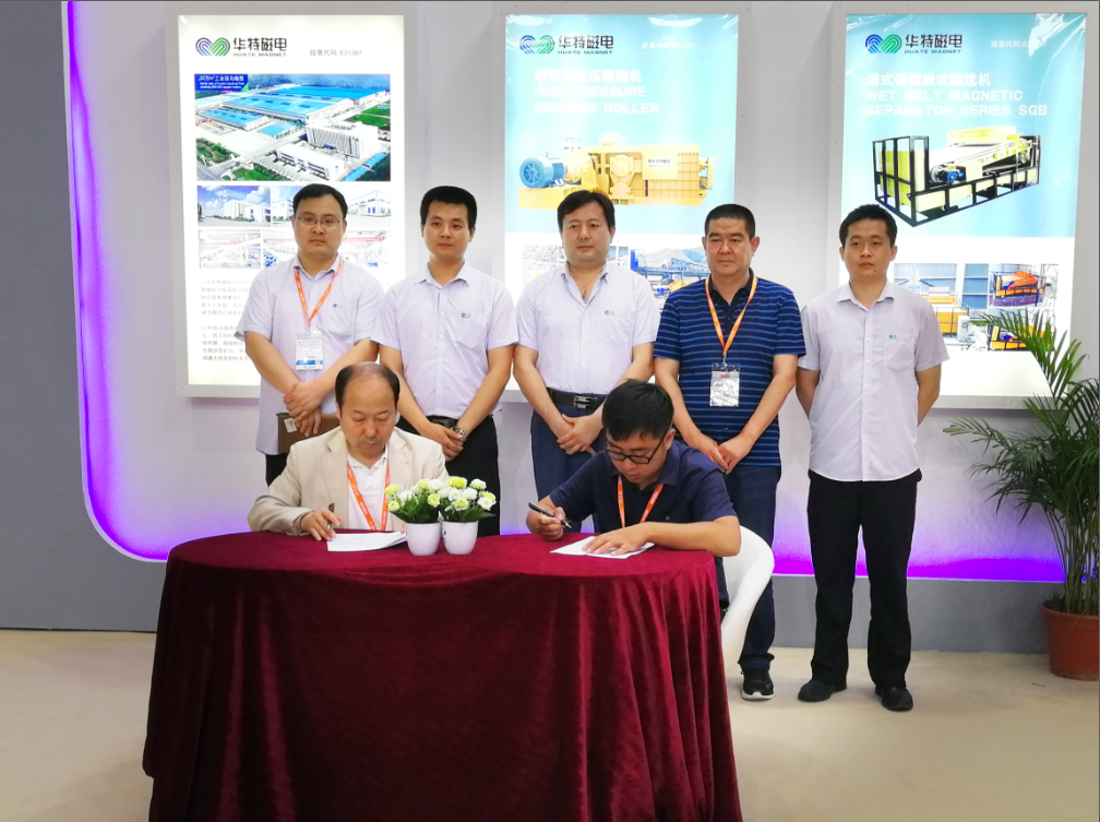 此次展出的產(chǎn)品,是華特公司緊密結(jié)合客戶需求,以市場為導(dǎo)向,產(chǎn)品質(zhì)量可靠,性能優(yōu)越,在市場上非常受歡迎,展會期間,華特展臺人流涌動,開展現(xiàn)場,工作人員對前來咨詢和洽談業(yè)務(wù)的客戶作了細(xì)致講解,客戶對華特產(chǎn)品贊不絕口,對華特優(yōu)勢產(chǎn)品紛紛表示認(rèn)同,開展當(dāng)日,旗開得勝,其中來自佛山客戶訂購立環(huán)高梯度磁選機(jī)2臺+粉體成套生產(chǎn)線設(shè)備,湖南客戶訂購濕式強(qiáng)磁板式磁選機(jī)1臺、四川客戶訂購單傳動高壓輥磨機(jī)1臺……會展現(xiàn)場,捷報(bào)連連,此次展會共達(dá)成合同額近千萬元。