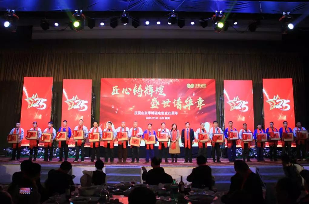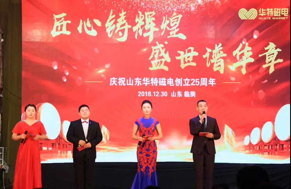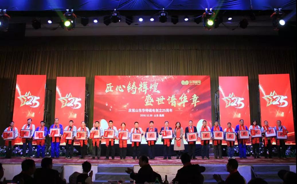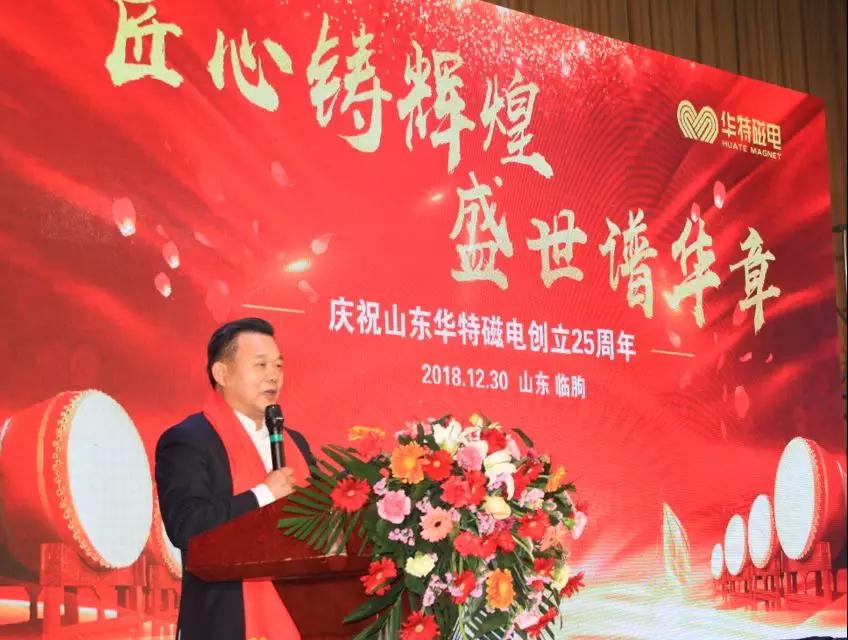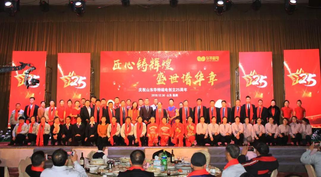 12月30日上午,山東華特磁電科技股份有限公司迎來了建企二十五周年慶典,臨朐經濟開發區管委會主任、城關街道黨工委書記白文玉,經濟開發區管委會副主任、街道黨工委委員尹德忠,華特公司董事長兼總裁王兆連、常務副總裁劉風亮、高級副總裁劉梅等領導與全體員工相聚臨朐攬翠湖溫泉度假村,一起回顧二十五年風雨征程,共同感受二十五載創業輝煌。