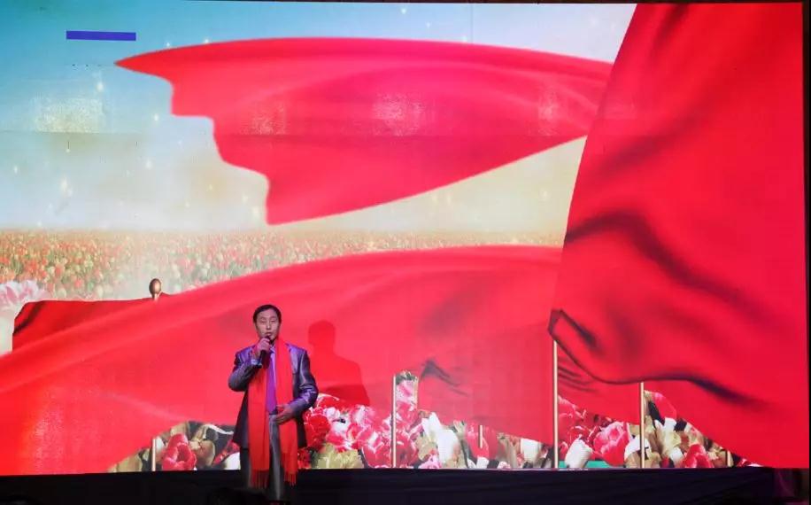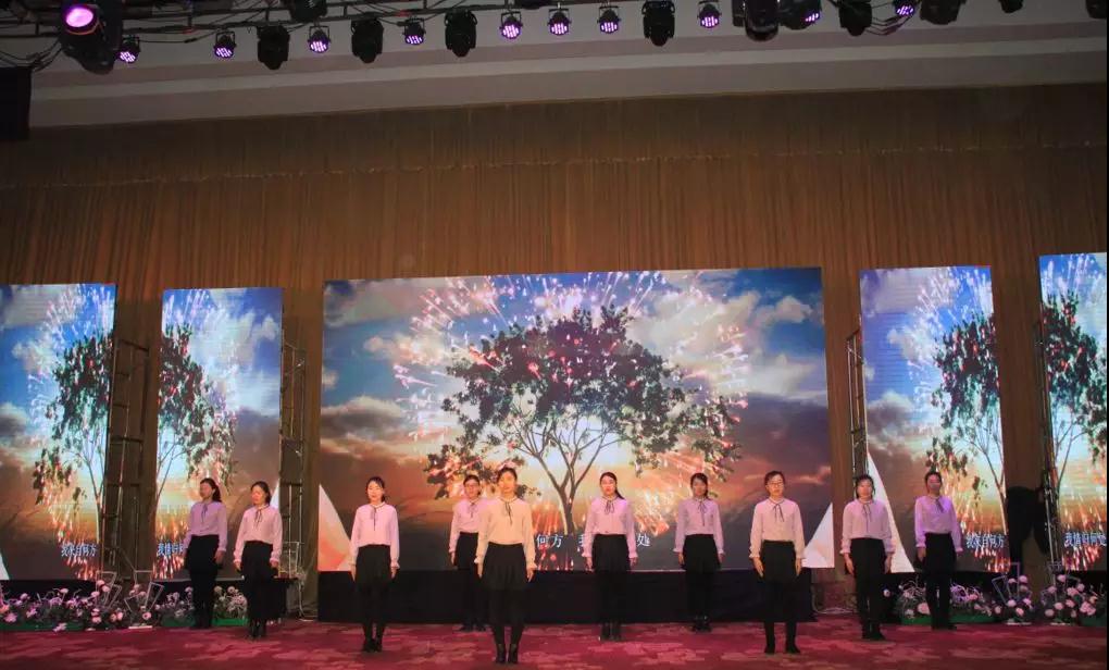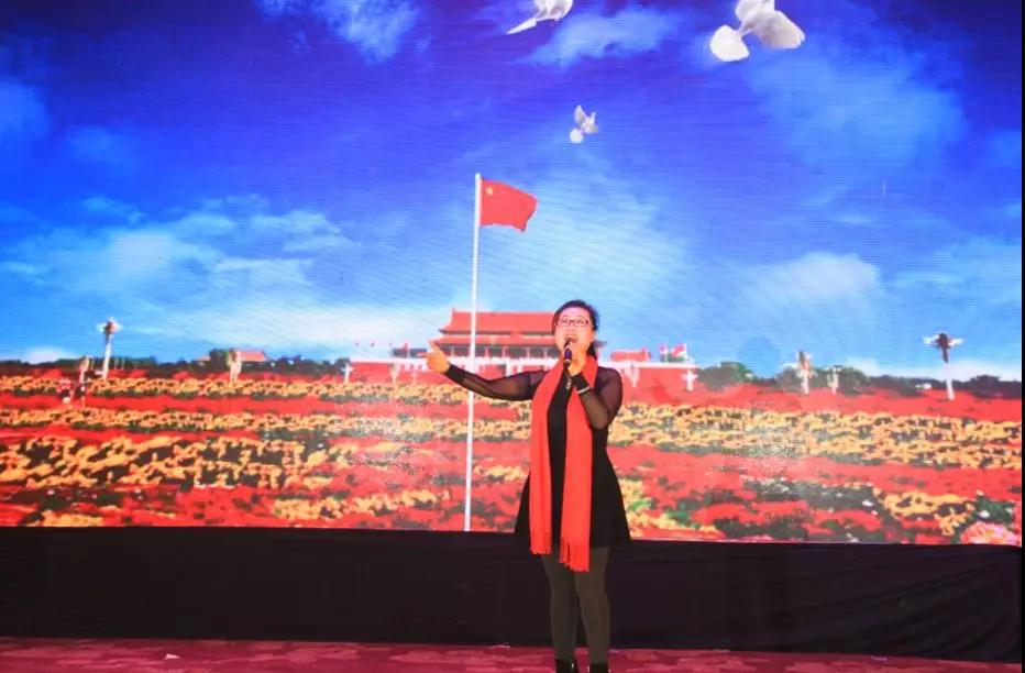 營銷中心史秀梅、孫靜、張海貞、劉杰等員工帶來的合唱《五星紅旗》