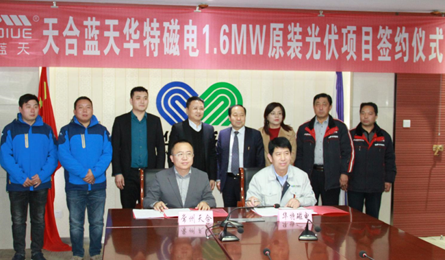 山東華特磁電科技股份有限公司董事長兼總裁王兆連、天合光能中國智慧分布式能源價值群商用項目部總經理張榮敏先生出席簽約儀式,雙方項目負責人參加活動。
